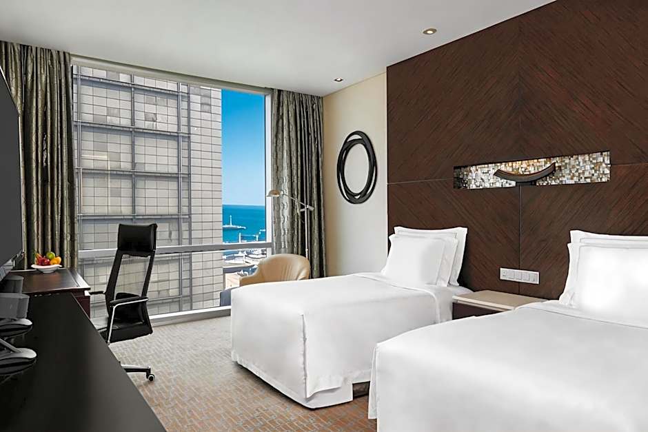 This twin room features a hot tub. The spacious air-conditioned twin room features a flat-screen TV with satellite channels, a mini-bar, executive lounge access, a wardrobe as well as sea views. The unit has 2 beds.